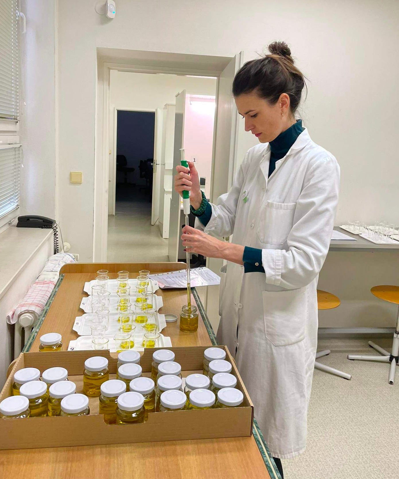 V našem týmu jsou školení hodnotitelé olivového oleje. Účastníme se školení a mezinárodních konferencí.
